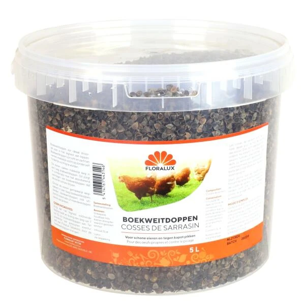 Boekweitdoppen zijn ideaal strooisel voor in het legnest van kippen. Ze zijn licht en zacht en nemen gemakkelijk vocht op zonder zelf echt hinderlijk vochtig te worden.