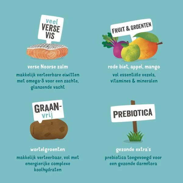 Edgard&Cooper hondenvoeding met verse Noorse zalm, rode biet, appel, mango en zwarte bes. Dit recept met véél verse Noorse zalm (en géén gedroogde of gedehydreerde zalm) zit vol omega 3 en hoogwaardige eiwitten. En prebiotica voor een gezonde darmflora. Deze brokken zijn graanvrij en hypoallergeen, ideaal dus voor gevoelige maagjes.