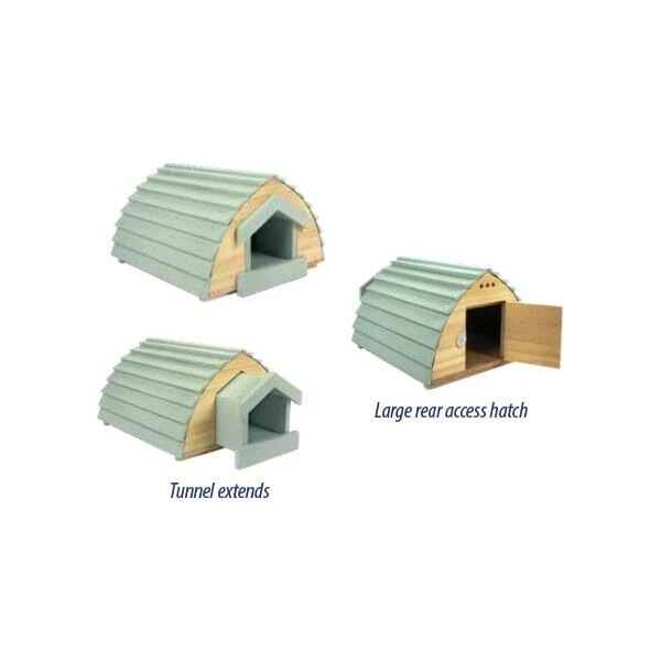 De uitschuifbare tunnel bemoeilijkt de toegang door roofdieren en biedt dus meer veiligheid. Het maakt het reinigen en opbergen van het egelhuis ook eenvoudiger. Voor grondige reiniging of inspectie is aan de achterzijde een inspectiedeurtje gemaakt.
