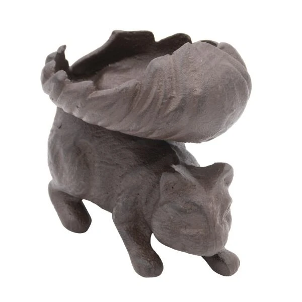 Eekhoorn in gietijzer met holle pluimstaart als eet- of drinkschaal. Een origineel en decoratief voederschaaltje voor in de tuin. Ook toepasbaar in huis als originele schaal voor noten of decoratie zoals potpourri, sierzand met kaars…