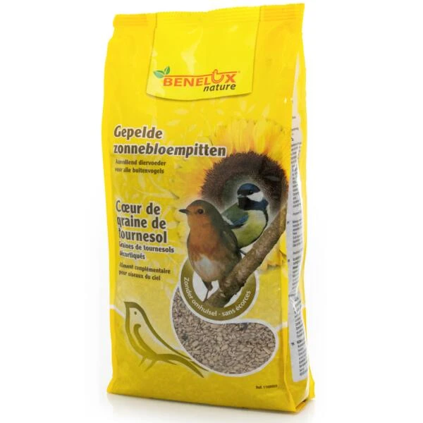 Voer jouw tuinvogels met deze gepelde zonnebloempitten. De inhoud van deze zak is 100% opneembaar gezien de pitten reeds zijn gepeld. Er blijven dus geen restanten achter in de tuin en de pitten zulllen ook niet meer kiemen op ongewenste plaatsen.