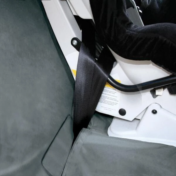 Er zijn 8 bevestigingspunten voorzien zodat de hoes altijd de perfecte pasvorm heeft. Een rits in het midden maakt het mogelijk om de helft in te klappen zodat de passagier niet op het deken hoeft te zitten. Openingen in de hoes maken bevestiging van de autogordel en kinderstoeltjes mogelijk.