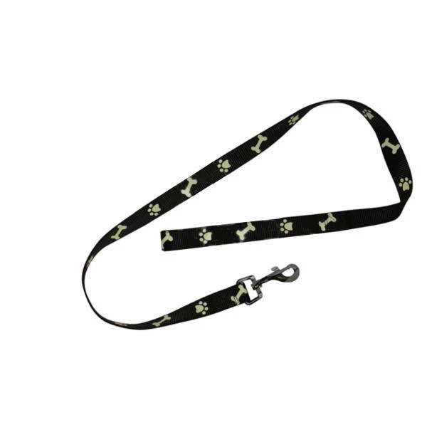 Leuke hondenleiband met reflecterende figuren in de vorm van hondenbotjes en -pootjes. Deze leiband in duurzaam kunststof is geschikt voor kleine tot middelgrote honden.