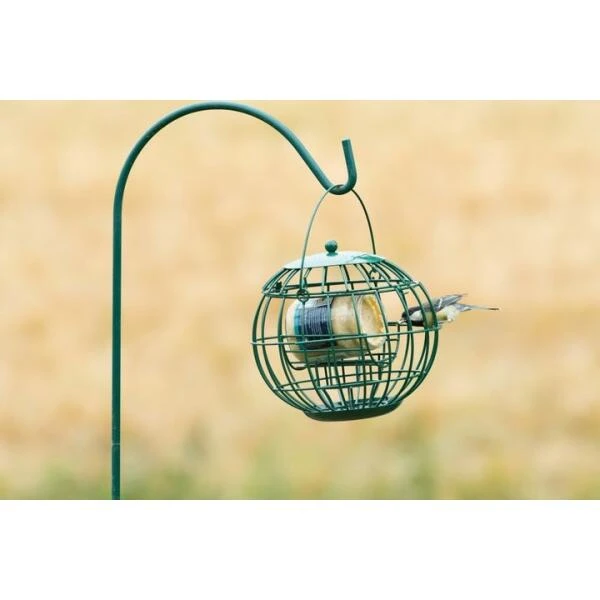 Pindakaas is een welgekomen wintervoeding voor tuinvogels en is zeer geliefd bij onze kool- en pimpelmezen. Deze bolvormige silo is een hangend model en heeft een stevige ophangbeugel.