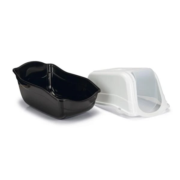 Een eenvoudige en betaalbare kattenbak voorzien van een grote klapdeur aan de voorzijde wat de geurhinder beperkt. Met het handvat bovenaan kan de kattenbak Romeo van Beeztees makkelijk opgetilt worden voor het reinigen van de bak en de ondergrond.