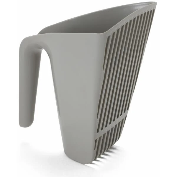 Het handvat voorkomt dat je in contact komt met bevuilde kattenbakvulling. Het schepje is V-vormig en met gleuven waardoor je efficiënter en schoner kan zeven.