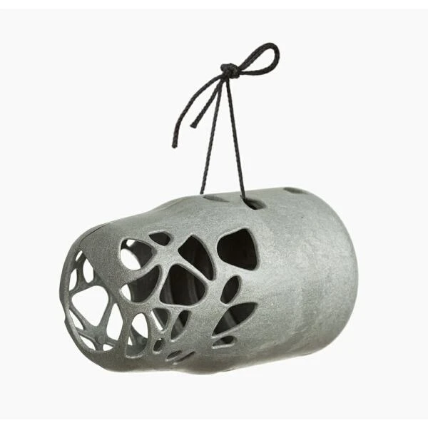 Pindakaaspothouder Esmee heeft een uniek design. Door de kleine openingen zullen voornamelijk kleine vogels van de pindakaas kunnen smullen.