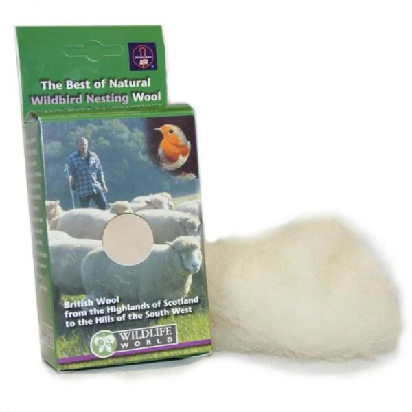 Dit doosje met Britse natuurlijk gesponnen wol is ideaal voor vogels die hun nest maken. Deze wol is al eeuwen wereldwijd bekend voor zijn stevigheid, zachtheid en warmte.