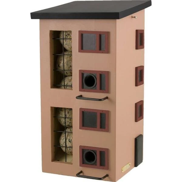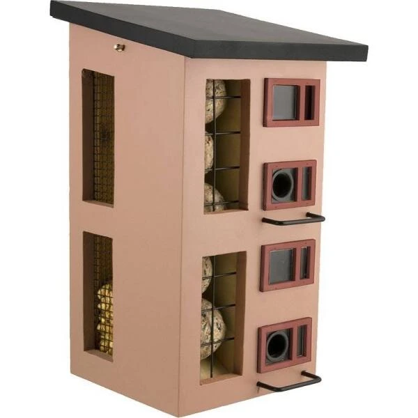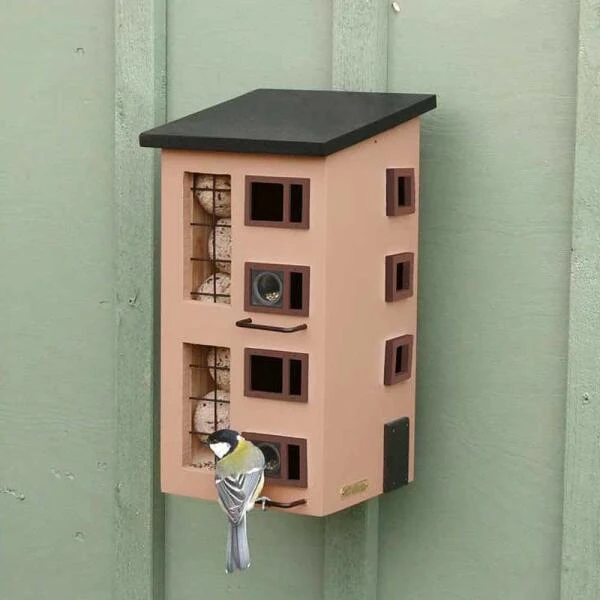 Met deze mooie en originele voederflat verwen je al de vogels in jouw tuin. Het ontwerp is gebaseerd op Deense flatgebouwen uit de jaren 50 en past zowel in de stadstuin als in een grote tuin op het platteland. In deze voedertoren is er plaats voor drie soorten vogelvoeder zodat je alles kan aanbieden wat de tuinvogels doorheen de winter wensen.