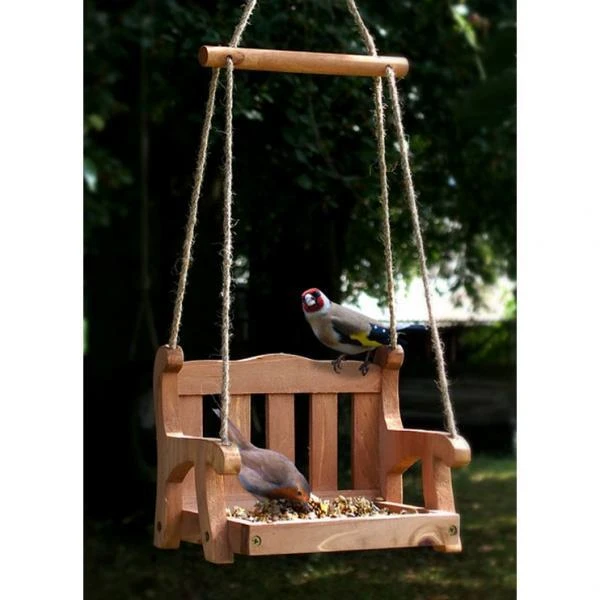 Wil jij de tuinvogels voortaan op een originele manier verwennen? Hang dan deze schommelbank in een boom, op het terras, aan de patio maar vooral in het zicht en vul de bank met lekkernijen voor de tuinvogels.